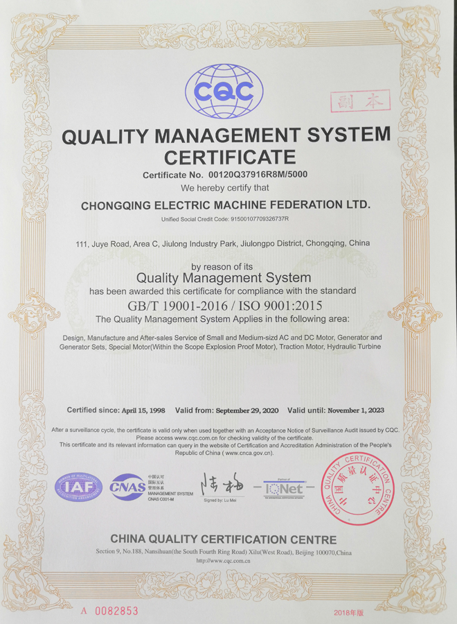 公司傳承了原重慶電機(jī)廠先進(jìn)的電機(jī)制造技術(shù)和管理經(jīng)驗(yàn),建立了按現(xiàn)代企業(yè)制度管理方式的法人治理機(jī)制,是國(guó)家重點(diǎn)企業(yè)及研發(fā)、生產(chǎn)和銷售各型交流異步電動(dòng)機(jī)、交流同步電動(dòng)機(jī)、直流電動(dòng)機(jī)、汽車電機(jī)、軌道牽引電機(jī)、水輪發(fā)電機(jī)及發(fā)電機(jī)組和其它特殊電機(jī)的專業(yè)制造廠家。